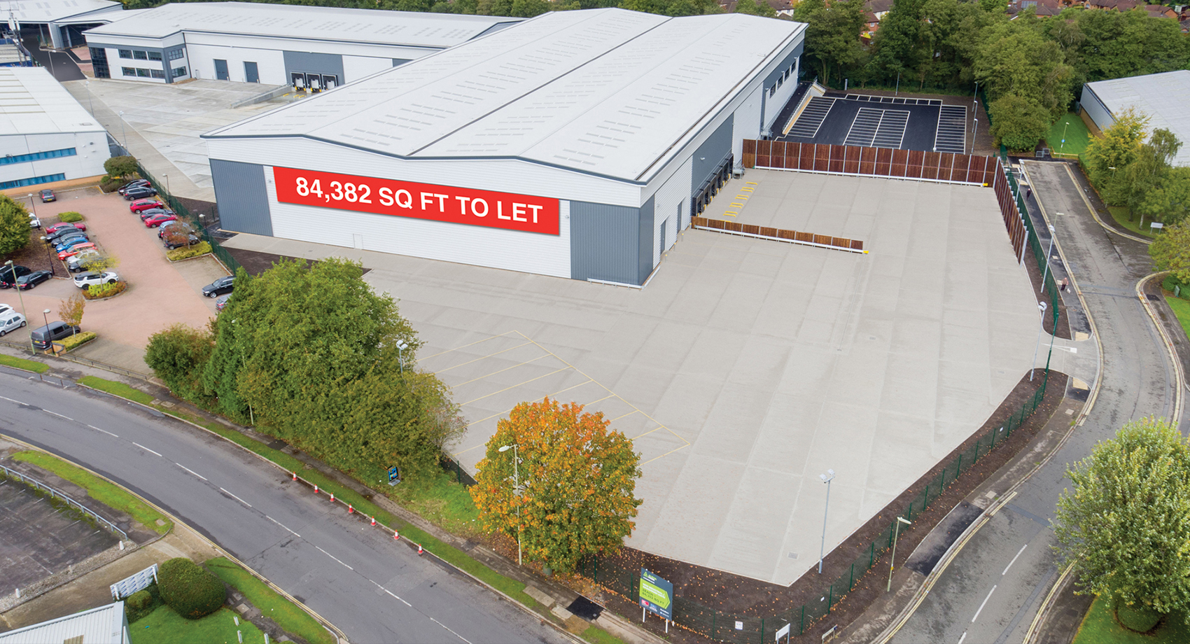 The building comprises 78,000 sq ft of warehouse space and 6,000 sq ft of office space and has two level access doors alongside six dock level loading doors.